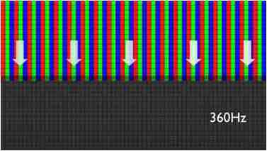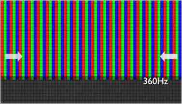传统液晶驱动是从左到右单向进行,,,在画面更新速度愈来越愈快的情况下,,,,位于驱动线路末端的右下角区域,,画素的闸极来不及在短时间内获得足够电压,,,,无法显示出正确的颜色资讯。。 |